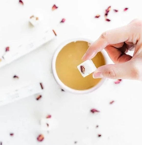 Calling all tea drinkers- what can easily elevate any warm cuppa? These beautiful rose sugar cubes! And they can be popped into so many beverages, beyond tea: “These cubes create an instant Black Rose Latte with our tea and are also tasty in coffee and bubblies!”